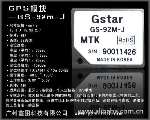 广州鑫图科技有限公司是韩国Gstar GPS模块的中国总代理!精工品质!完善售后!现货供应!诚信合作!