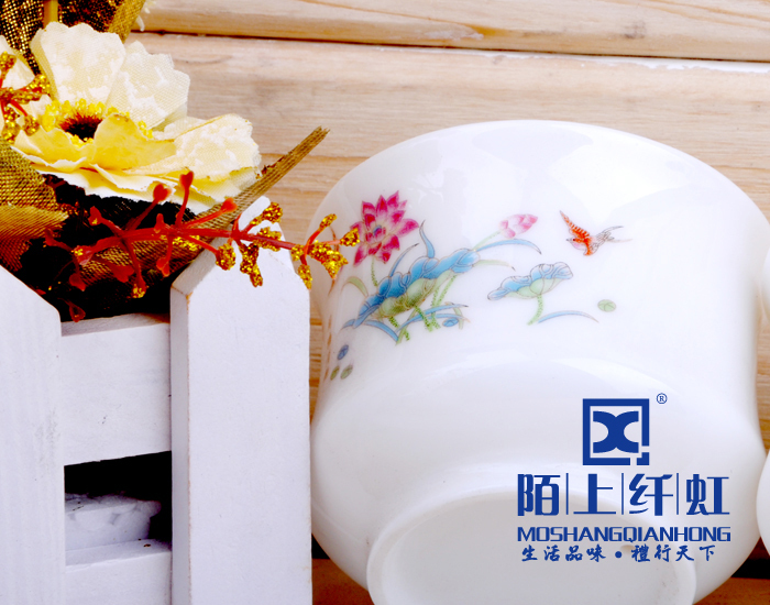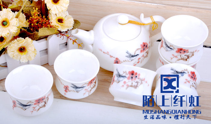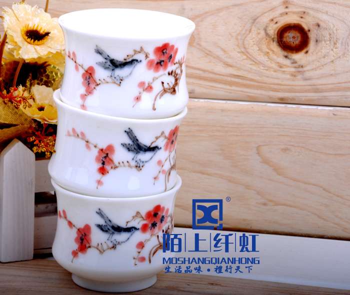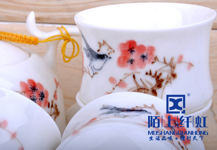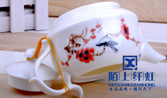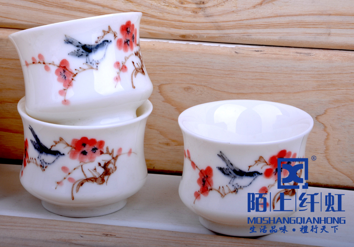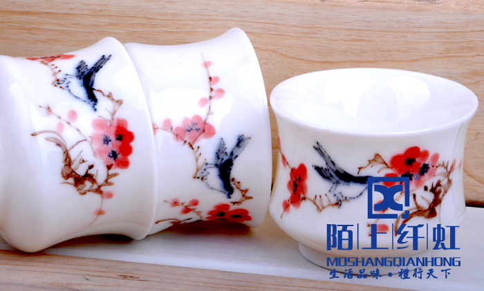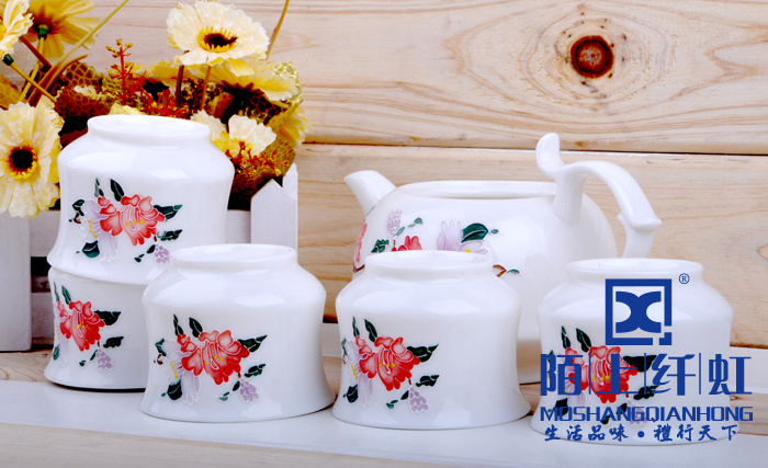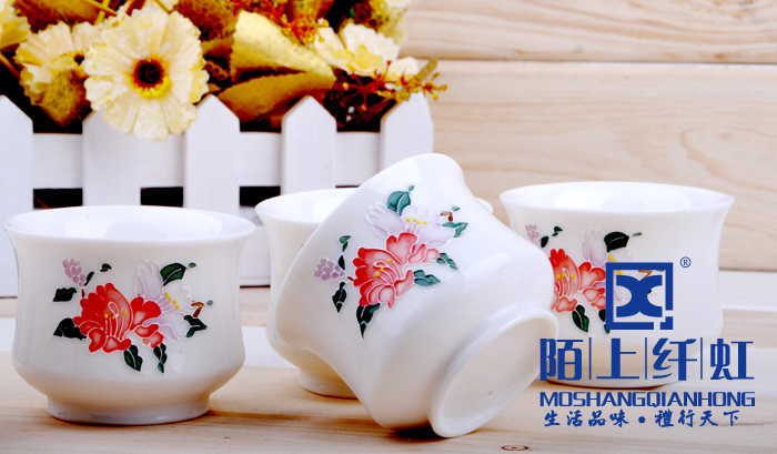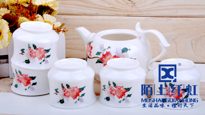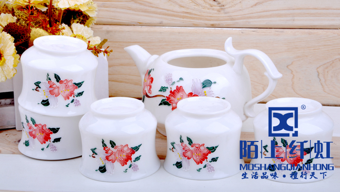 - 烧成温度比普通玉瓷高出500度以上,普通瓷烧成1880 -1300度之间,我们烧成的温度在1330-1350度,所以光泽度特别好。烧成温度越高瓷质越细腻、坚硬,也就是瓷化程度越高,吸水率越低,越不会黏附茶垢,更容易清洗。素有“白如玉、薄如纸、敲如钟、声如謦之美誉。做工方面我们的宗旨是“追求卓越精益求精”,在别人没注意的细节地方下大功夫,尽量精细化,达到平如镜。从模具到产品要求一流的做工,并且经过道道工序的检验。