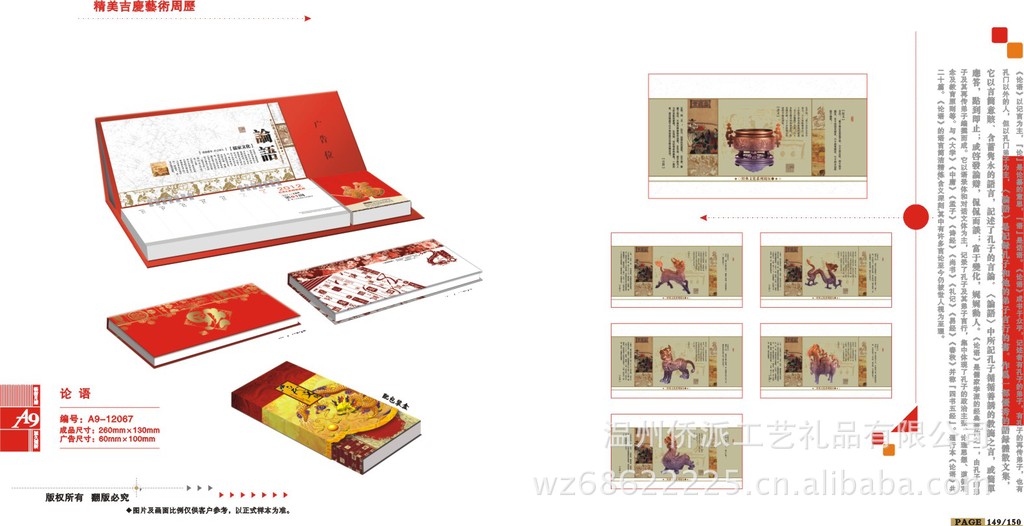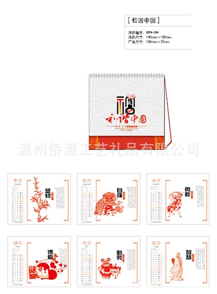 温州侨派工艺礼品有限公司是一家集生产加工台历、挂历、礼品包装盒、吊牌、中国结、大班台垫专版台挂历制作企业。本厂有全自动糊架机对外加工台历架,笔记本册,书壳等。温州侨派工艺礼品有限公司是一家经国家相关部门批准注册的企业。本厂以雄厚的实力、合理的价格、优良的服务与多家企业建立了长期的合作关系。温州侨派工艺礼品有限公司——热诚欢迎各界前来参观、考察、洽谈业务。