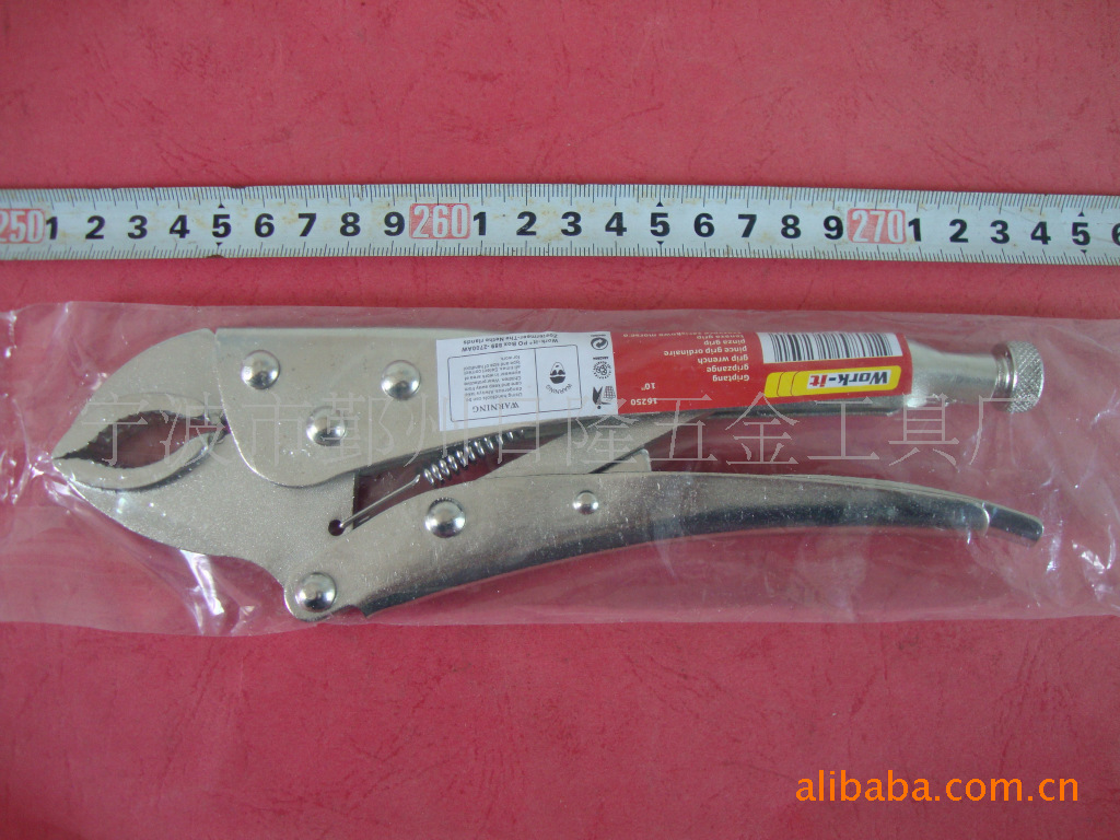 主要用于夹持零件进行铆接,焊接,磨削等加工.其特点是钳口可以锁紧并产生很大的夹紧力,使被夹紧零件不会松脱,而且钳口有很多档调节位置,供夹紧不同厚度零件使用,另外也可作扳手使用。