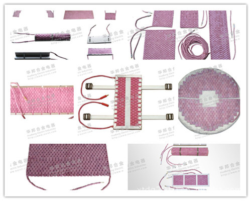 根据国外陶瓷加热器有关技术资料,盐城市华邦合金电器有限公司研制成各种形状的履带式加热器和绳式加热器,陶瓷加热器又称柔性电阻加热器。选用优质镍铬丝缆作发热源,高纯度氧化铝陶瓷元件为绝缘体制成不同形状的履带式加热器及绳式加热器,可满足用户对各种工件热处理的新型产品。