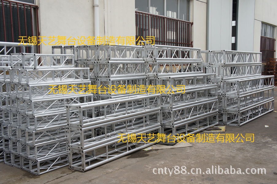 铝合金桁架:铝合金桁架本身所特有的重量轻、牢固力强;承载力好、跨度大;连接灵活等特性,使得铝合金架不仅可单独使用,也可用插销式铝架或板对接铝架把它们组装成大型的流动活动场所。如各种大型流动演出、产品宣传展览,大型展览篷房,临时灯光音响架等。单独使用时,可用于承载灯光、音响等设备;特别是在户外使用是更可搭配合适的颜色也可使用顶篷,搭建起不同面积、不同负荷力的各种工程架,即可挡风沙,防雨晒,又美观大方实用,一举两得。款式多样,规格品种齐全,价格优惠,欢迎新老客户光临,也可根据您的要求订购。