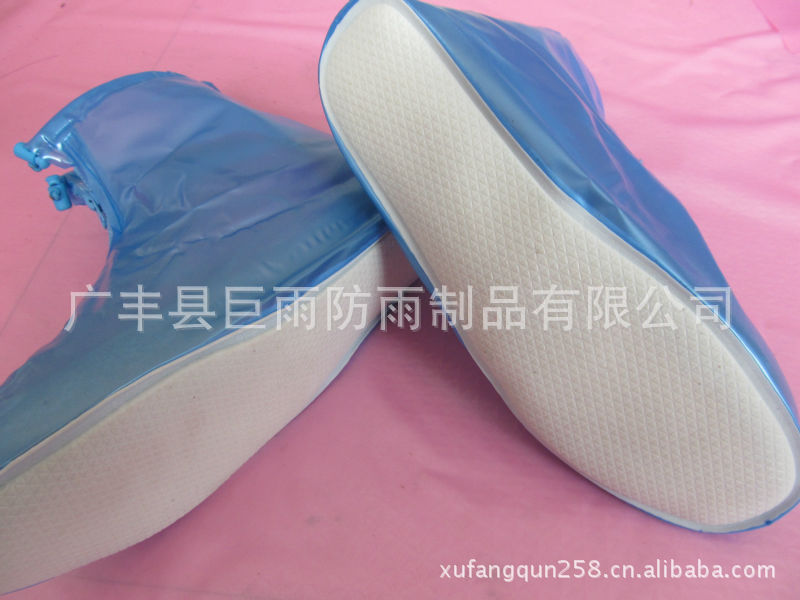 3、材料:高弹性PVC防雨材料+大波浪纹防滑鞋底