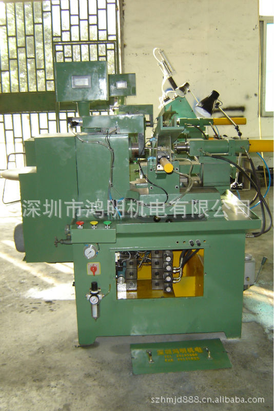 该转子外圆自动粗車机电控系统采用台达DOP-A57GSTD具有人性化的人机对话操作界面和DVP-32ES00R2可编程控制器做为控制中心,采用油压系统控制,整套设备包含有油压马达1台,主轴传动马达1台,行程控制阀1个(双电控),主刀控制阀1个(单电控),顶针电磁阀1个(双电控),卸料电磁阀1个(单电控),上料电磁阀1个(双电控)。