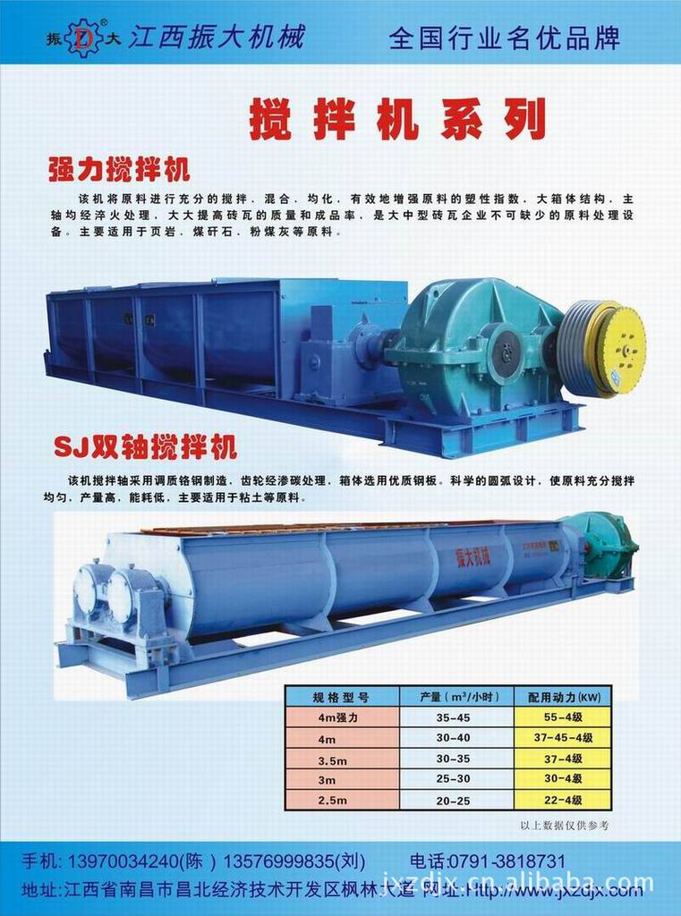 该机搅拌轴采用调节铬钢制造,齿轮经渗碳处理,箱体选用优质钢板。科学的圆弧设计,使原料充分搅拌均匀,产量高,能耗低,主要是用于粘土等原料。