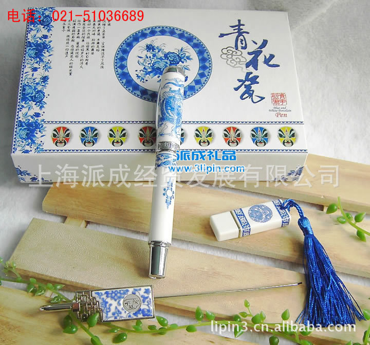 【产品描述】:本产品笔管和笔帽均采用青花传统工艺制作,青花瓷笔上运用天然钴料在白泥上进行绘画装饰,再罩以透明釉,