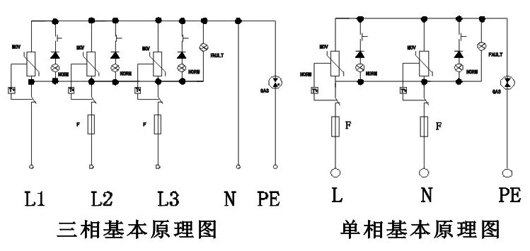 低压配电系统电源防雷箱,全金属密封防爆型,依据IEC标准设计,具有失效检测指示、过流过热保护装置,具备大的雷电流泄放能力,适用于建筑物电源系统的防雷保护,维护极为方便,此防雷器并联于线路中,对后接设备的功率无限制。