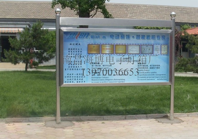 南昌市青云谱区海博灯箱广告制品厂从2004年开始做普通灯箱,从最初的以个人消费为主要目标,市场从零做起,到现在服务于诸多大小广告、装饰、传媒公司,经过多年的积累发展, 我厂现已经形成遍布江西省各个地区市、县和全国近10个省、市的客户群,从原先单一的个人消费为主的市场,变为以企事业单位、各个广告、装饰、传媒公司为主的市场结构,产品从单一的普通灯箱发展开到拥有:滚动换画灯箱、不锈钢灯箱、冷轧板烤漆灯箱、公交站台换画灯箱 、小区宣传栏、超薄灯箱、磁吸灯箱、三面翻、LED电子灯箱LED显示屏等10余种产品!我们拥有自己的近1000平米专业生产车间,多台专业制作设备,今后我们将在此基础上不断推出新的高品质、低价位的源头广告制品来服务市场 。TEL:13684813359 (刘)