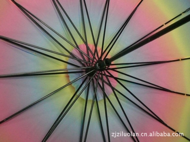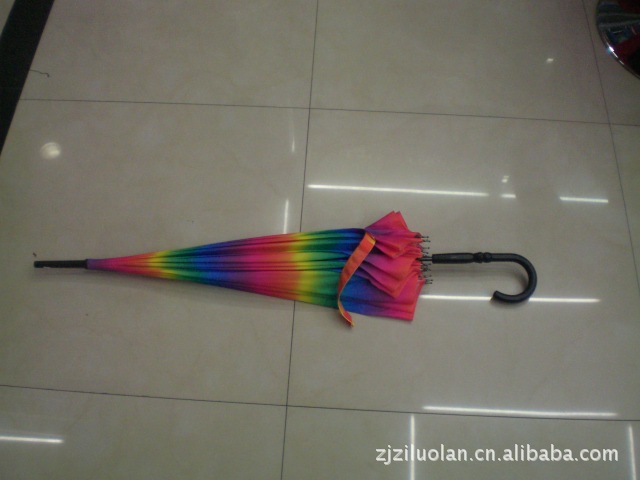 16K*58公分宝塔彩虹伞,手开槽骨伞架。碰织彩虹布料