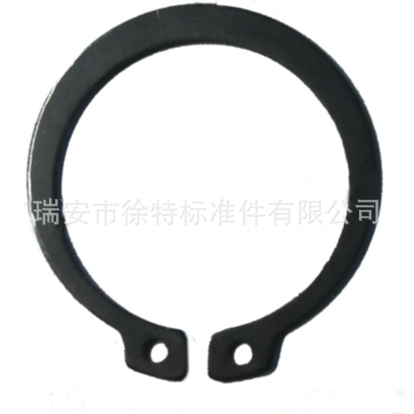 是一种安装于槽轴上,用作固定零部件的孔向运动,这类挡圈的内径比装配轴径稍小。安装时须用卡簧钳,将钳嘴插入挡圈的钳孔中,扩张挡圈,才能放入预先加工好的轴槽上。
