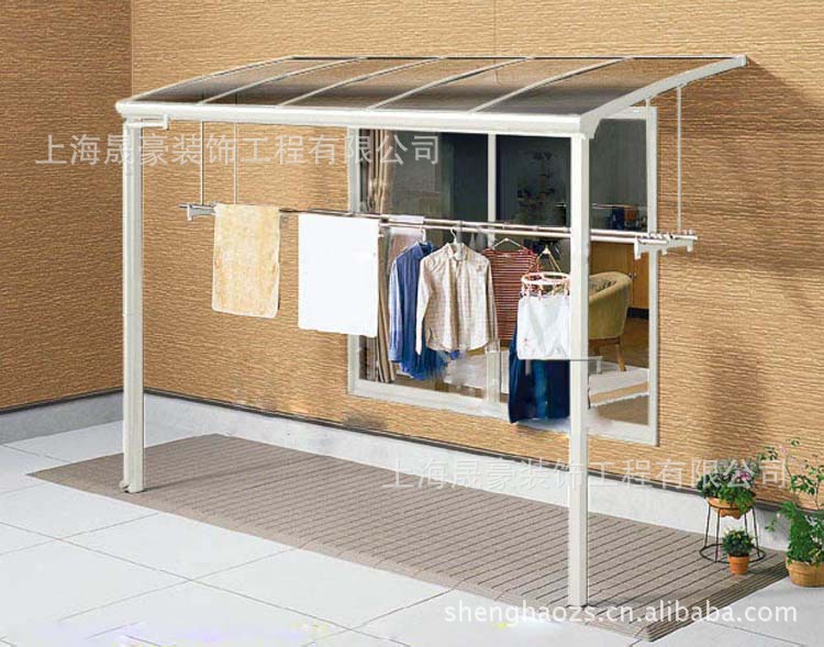 功能1:作为晾晒衣物的空间最适合,在其下部可以安装晾衣架晾晒衣物,由于可以遮风挡雨,即使您外出时突然下雨也无妨。