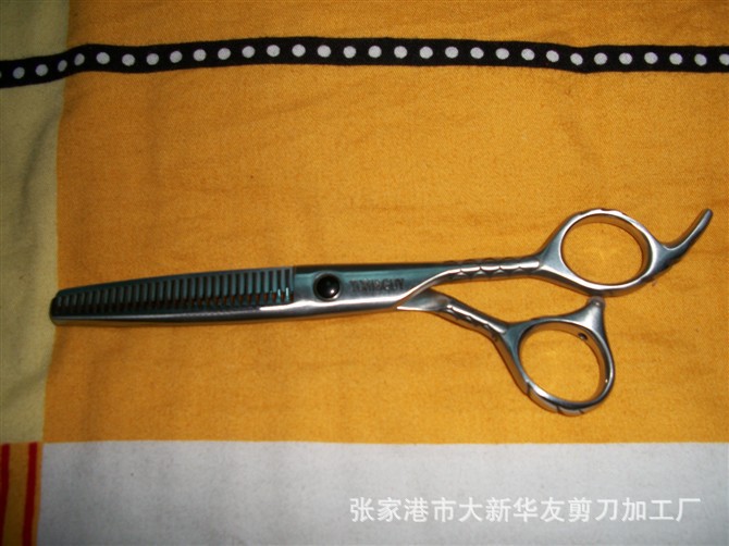 公司产品由我厂先进设备及专业人员精心制作。具有锋利,耐用,手感畅滑。专业设计师根据人体手形精心设计,最新的流线型设计刀身。长时间工作时,可减轻手肘及肩膀疲劳。可用于滑剪,飞剪。湿发不打滑,打薄剪修剪轻松。多种齿形,适合于任何发型。实用,美观是高级专业发型师之首选。