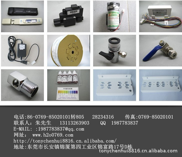 3、纯水机各型号配件,滤瓶,高压开关,低压开关,进水电磁阀,水泵,逆止阀,净水龙头,电脑盒,压力桶。