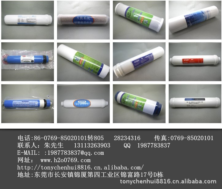 本公司优势产品有:1、反渗透家用及商用纯水机,超滤净水器,不锈钢净水器,中央净水机。2、各类过滤芯PP棉,颗粒炭UDF,压缩炭CTO,树脂滤芯,小T33,陶瓷滤芯,麦饭石矿化滤芯,功能滤芯。3、纯水机各型号配件,滤瓶,高压开关,低压开关,进水电磁阀,水泵,逆止阀,净水龙头,电脑盒,压力桶。4、各式接头普通接头和各种型号快速接头5、水质检测工具TDS笔,电解器,余氯测试液,水质演示器等。6代理产品韩国CSM世韩膜,CCK管,DM管,凯弗隆开能系列产品。