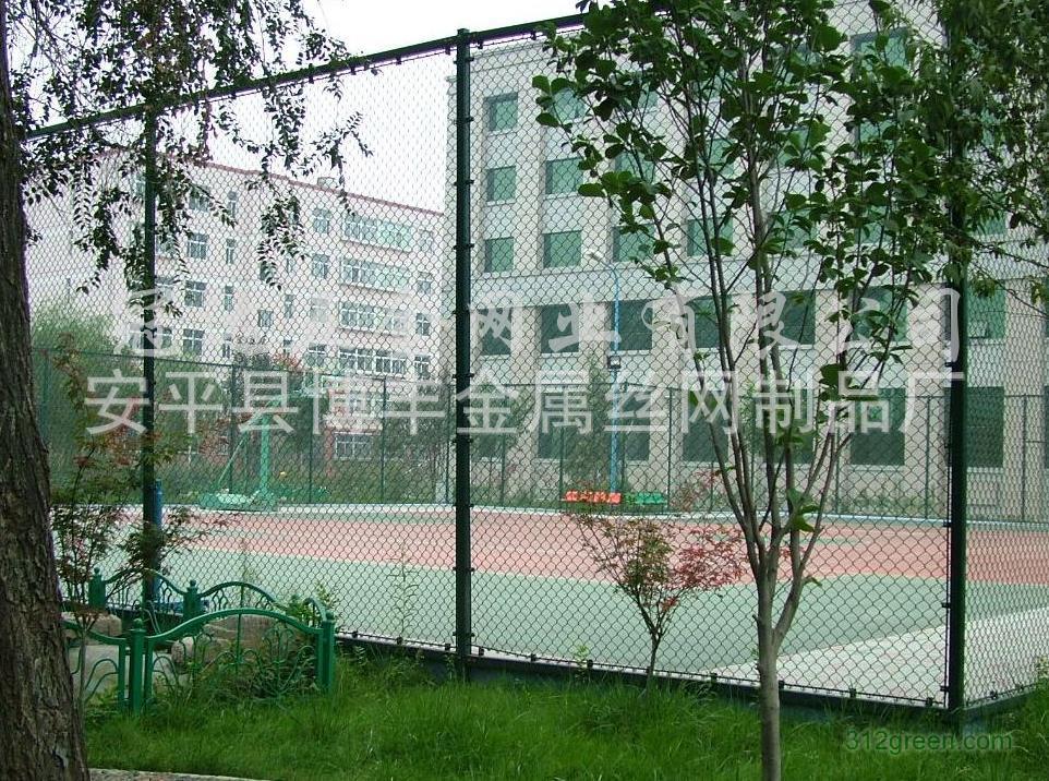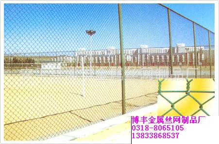 博丰体育场围网特点:色彩鲜亮,抗老化,耐腐蚀,网面平整,强力张紧,不易受外力撞击变形。 围网采用进口PVC材质包塑铁丝网做网球场的围网,既可节省每年为普通铁丝重新油漆的费用,其使用寿命又较普通铁丝网长三~五年,可以保证不会卡住或穿过网球。 1、 基座:在基础施工时应预埋好围网网架的铁制预埋件。 2、 体育场围网规格:包塑丝经 3.8mm ,网孔 50mm X 50mm ,尺寸: 3000mm X 4000mm , 立柱: 直径60/2.5mm钢管 , 横柱: 直径48/2mm钢管焊接 , 连接方式:焊接 或插接 3、 拉网:安装PVC包塑网应用专用工具拉紧,再用扁铁条及自钻螺丝钉固定。 主要用于对质量要求较高的网球场地,篮球场地,综合场地围网。