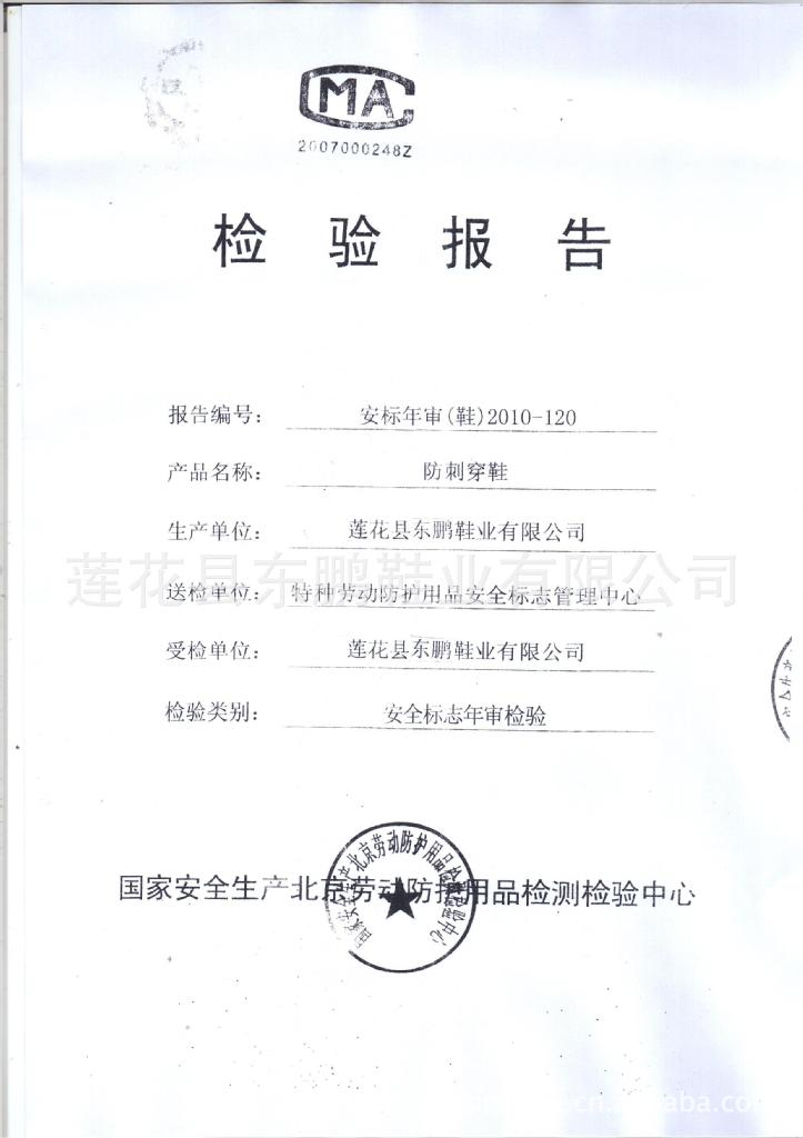 2.防刺穿(适用于地面存在尖利器物等的作业):执行标准号GB12017-1989