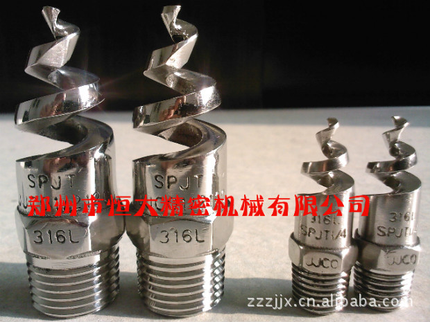 是一种实心锥形或空心锥形喷雾喷嘴,喷流角度范围可为50°-170°。在3巴压强下,液体流率范围为5.5-4140升/分。这种结构紧凑的喷嘴有着畅通的流道由郑州市恒大精密机械有限公司设计,可以最大程度地减少液体阻塞,使液体在给定尺寸的管道上达到最大流量。 螺旋喷嘴可以在大多数管道系统上安装或更新。可提供的喷嘴有NPT或BSPT(外)螺纹型。通常1/4英寸一4英寸的喷嘴可分别用黄铜、316不锈钢铸件、。如需应用于特殊领域,也可采用其它材料制造。