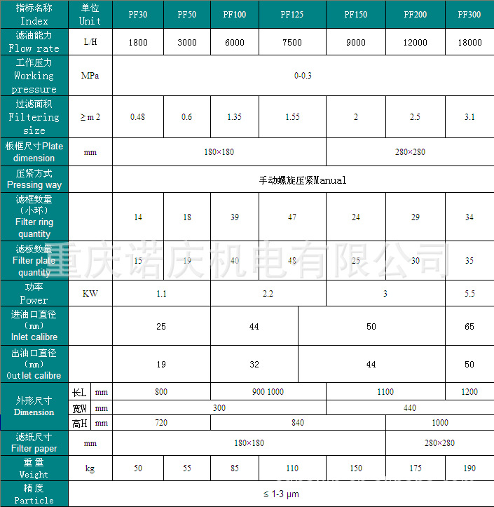 板式滤油机/车技术参数: