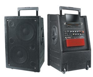 产品说明电源:AC110-240V,内置1个12V/20AH可充电电池频率响应:35Hz-20000HzSPL:94dB(1W/M)T.H.D:<1%2路有线麦克风输入:-58dBV 600喇叭:10低音*2 3"高音+号角高音RMS功率:350W输入插口:φ6.5有线麦克风插口,线路输入插口输出插口:左右声道输出插口尺寸:635x430x370mm