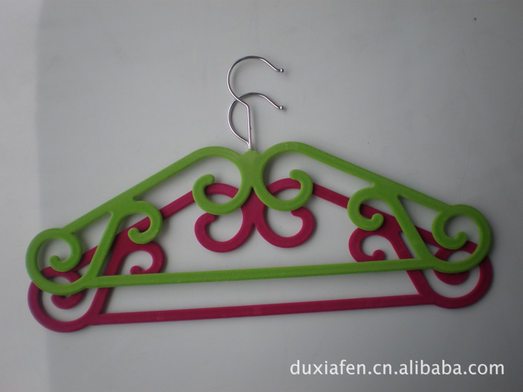 这款衣架结合生活实际,突破传统格局,材料精心设计。外表布满了植绒,因此在挂衣物的时候避免了脱落等现象发生。