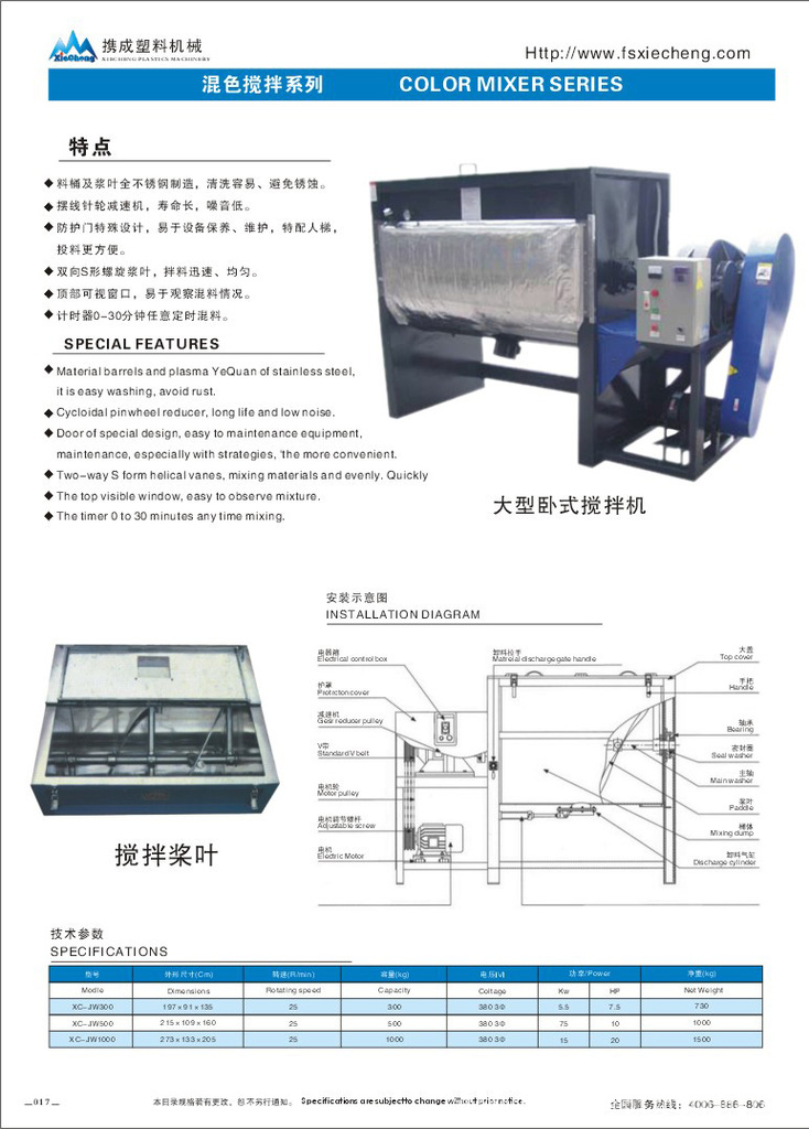 料桶及桨叶采用不锈钢材料制造,清洗容易、避免锈蚀。