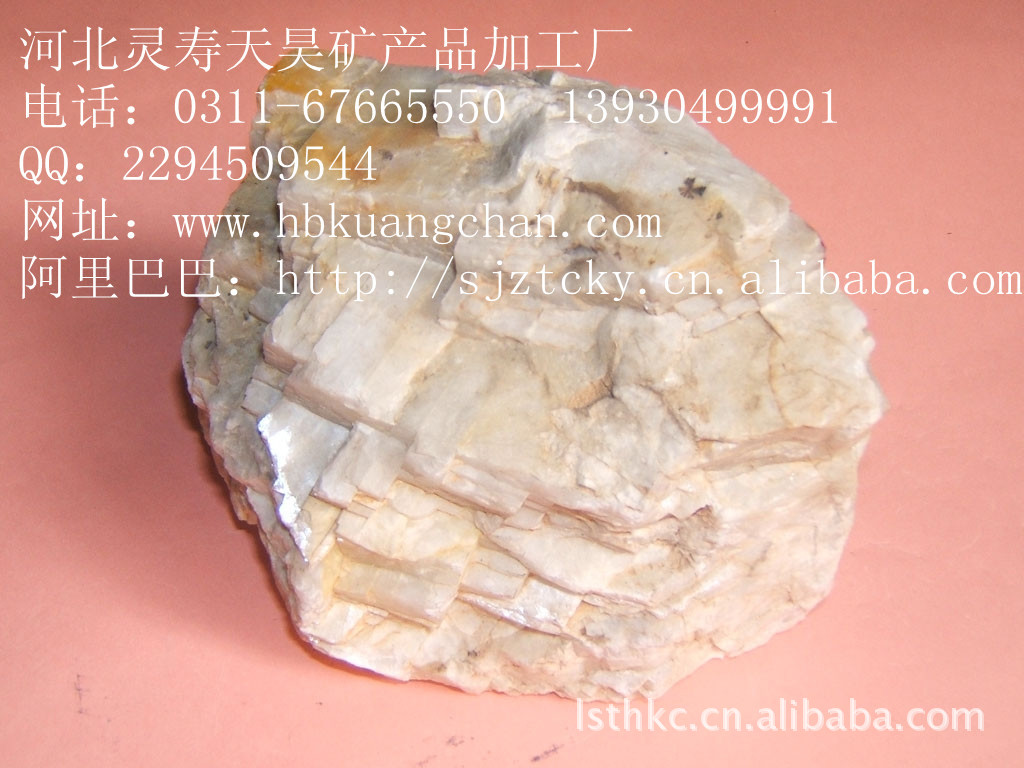 重晶石以硫酸钡(BaSO4)为主要成分的非金属矿产品,纯重晶石显白色、有光泽,由于杂质及混入物的影响也常呈灰色、浅红色、浅黄色等,结晶情况相当好的重晶石还可呈透明晶体出现。重晶石系硫酸盐矿物。成分为BaSO4。自然界分布最广的含钡矿物。钡可被锶完全类质同象代替,形成天青石;被铅部分替代,形成北投石(因产自台湾北投温泉而得名)。正交(斜方)晶系,晶体常成厚板状。纯净的重晶石透明无色,一般为白色、浅黄色,玻璃光泽,解理面呈珍珠光泽。具3个方向的完全和中等解理,莫氏硬度3~3.5,比重4.5。主要形成于中低温热液条件下。 重晶石化学性质稳定,不溶于水和盐酸,无磁性和毒性。重晶石化学组成为Ba[SO4],晶体属正交(斜方)晶系的硫酸盐矿物。常呈厚板状或柱状晶体,多为致密块状或板状、粒状集合体。质纯时无色透明,含杂质时被染成各种颜色,条痕白色,玻璃光泽,透明至半透明。三组解理完全,夹角等于或近于90°。摩氏硬度3-3.5,比重4.0-4.6。鉴定特征:板状晶体,硬度小,近直角相交的完全解理,密度大,遇盐酸不起泡,并以此与相似的方解石相区别。重晶石是以硫酸钡(BaSO4)为主要成分的非金属矿产品,纯重晶石显白色、有光泽,由于杂质及混入物的影响也常呈灰色、浅红色、浅黄色等,结晶情况相当好的重晶石还可呈透明晶体出现。重晶石是一种混合物。