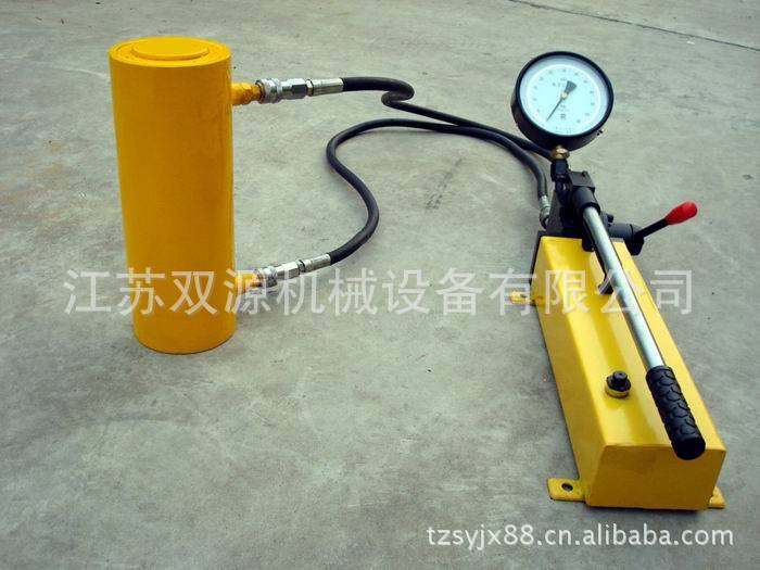 7、使用时先将手动泵的快速接头与顶对接,然后选好位置,将油泵上的放油螺钉旋紧,即可工作。欲使活塞杆下降,将手动油泵手轮按逆时针方向微微旋松,油缸卸荷,活塞杆即逐渐下降。否则下降速度过快将产生危险。