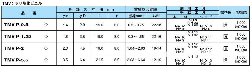 日本日富端子NICHIFU品牌TMV绝缘套管TMV P-1.25(铜线用P型套管)