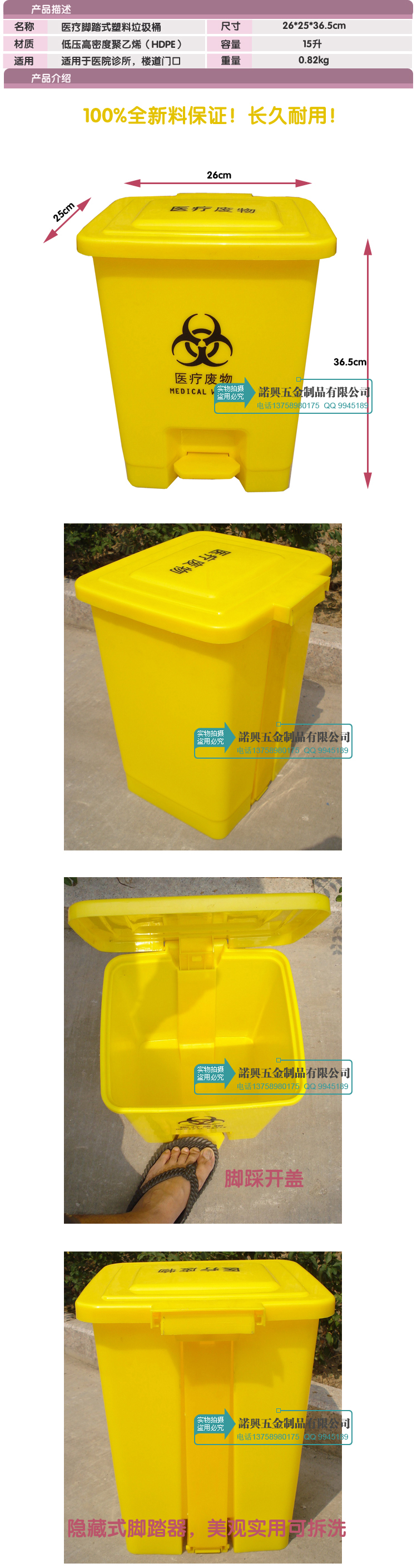 【批发选购】15升 脚踏塑料 医疗垃圾桶【款式多样 欢迎订购】