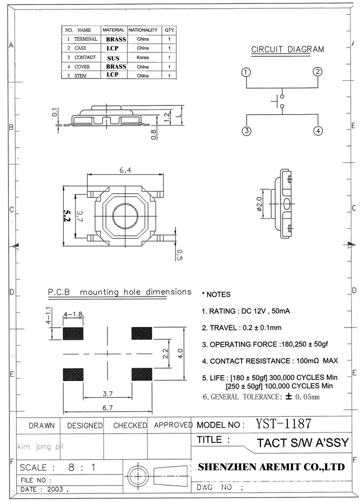 深圳市艾尔美科技有限公司成立于2006年3月,公司座落于素有深圳市“宝安第一碉楼”的观澜镇,背靠着有名的观澜高尔夫球场,公司的产品原材料为韩国原装进口,产品涵盖应用于手机、mp3,各种数码产品等电器上的拨动开关、轻触开关、连接器及各类电子开关元件。
