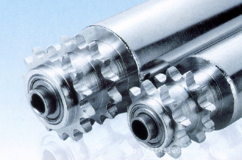 用于动力式链传动动力滚筒线.连在一起一个带动一个。构成长长的动力滚筒排,用于输送体面大,重量大的产品。
