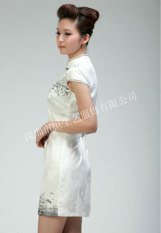 【特点】 您可能有时会长时间的留恋在旗袍的专柜前,相信我们公司自主设计与创意,追求新潮却未忘根本.你欣赏它百变的面料图案,别致的扣襻,圆润的滚边儿,鲜活的刺绣,玲珑的腰身,镂空的衣领,挂在那,就是一幅极富欣赏的画。相信绝对能吸引你明亮的眼球。