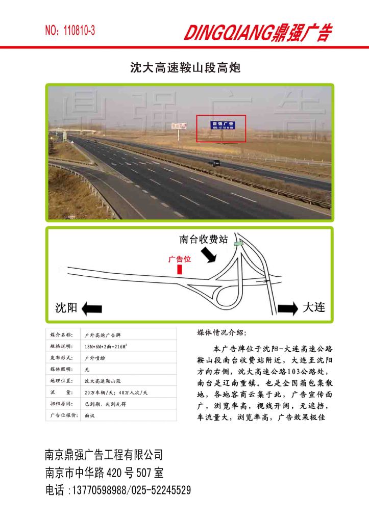 南京鼎强广告工程有限公司成立于2003年,专业致力于设计、制作、发布、代理国内各类广告,户外、高炮广告为一体的综合性公司。公司在南京市区、机场高速、沪宁高速、沪杭高速、宁杭高速、宁合高速、宁六高速、G104国道、大桥、二桥等交通要道有户外媒体。合作单位涉及金融业、建材业、酒业和房地产业等。公司具备多年大型户外广告发布的经验,提供专业和完善的售后服务,业务遍及江苏、浙江、安徽、上海等地。我们擅长运用高新科技,从客户需求及传播效果出发,整合并创造新概念户外媒体,以提供从“精准策略-犀利创意设计”至“完美制作-有效执行发布”,客户满意率达95%以上。