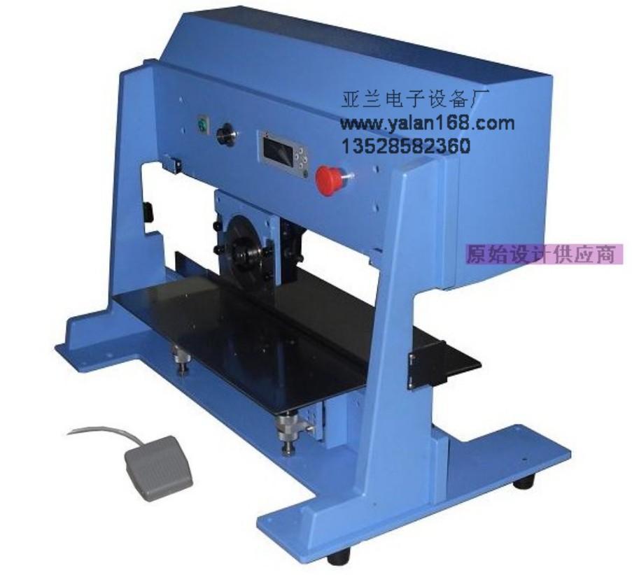 电动滑轨型'V'槽分板机基板不动,降低损伤。分切速度和分切行程可自由可设定。操作简单,多处安全感应装备,控制界面人性化,因V槽深浅和刀具损耗,上圆与下直切刀之间距离可精确调整。可分割零件跨越V槽的基板。应用于电子行业如MP3主板,手机线路板,LED插板等分割