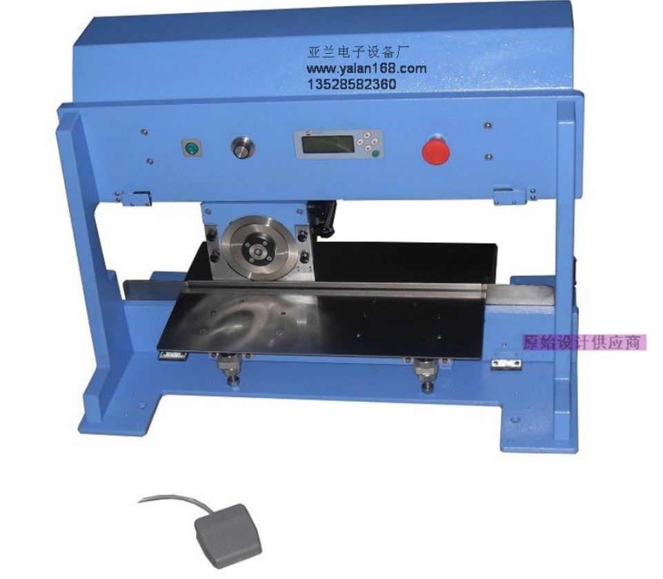电动滑轨型'V'槽分板机基板不动,降低损伤。分切速度和分切行程可自由可设定。操作简单,多处安全感应装备,控制界面人性化,因V槽深浅和刀具损耗,上圆与下直切刀之间距离可精确调整。可分割零件跨越V槽的基板。应用于电子行业如MP3主板,手机线路板,LED插板等分割。