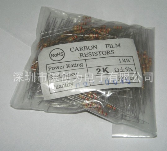 色环电阻 1/4W 2K欧 5%精度 500个一包 全新正品 5元一包