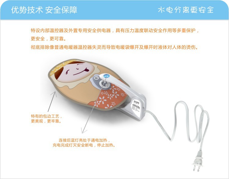 4、电暖袋不使用或在存放时,器具温度要冷却后才能存放。