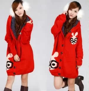 名媛衣庄/秋冬新款2013女装兔子加厚针织开衫宽松加绒外套 批发