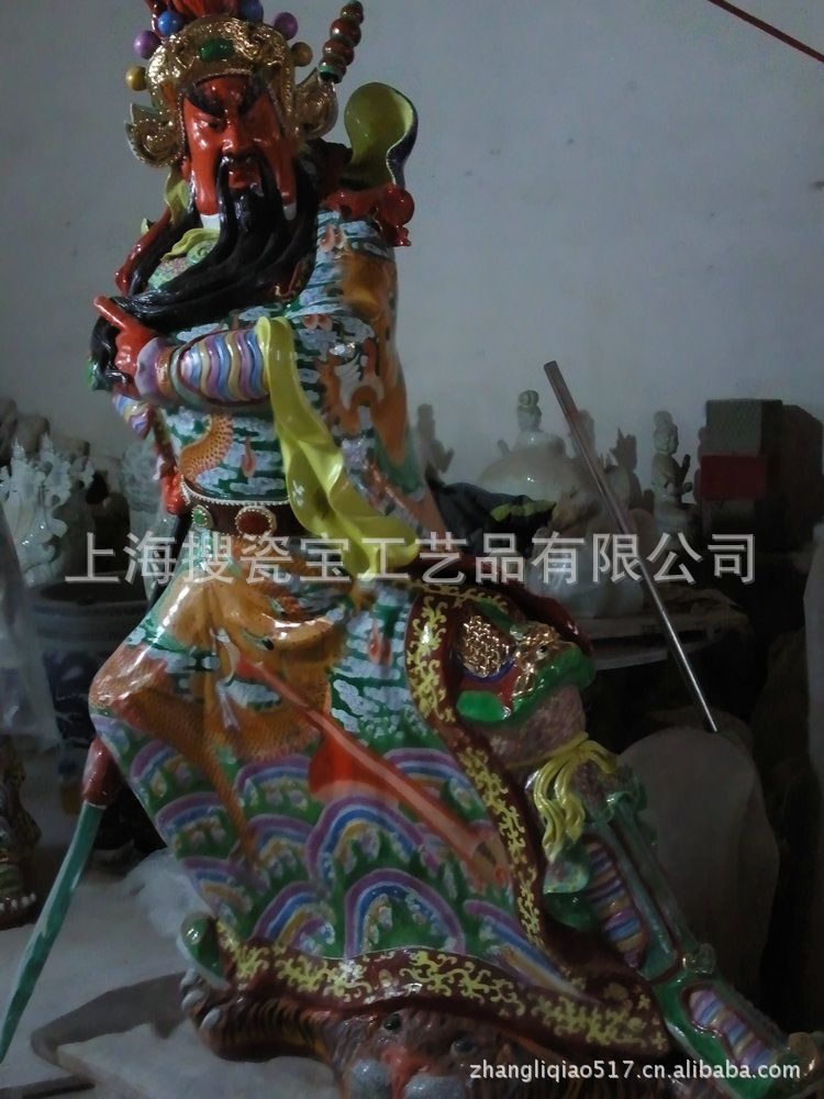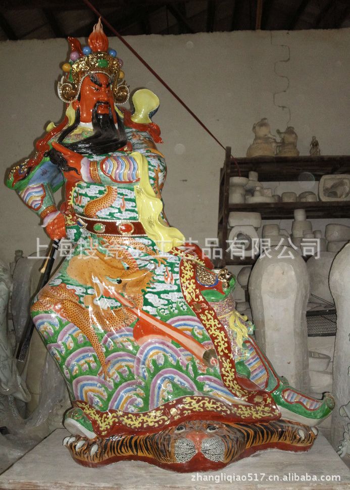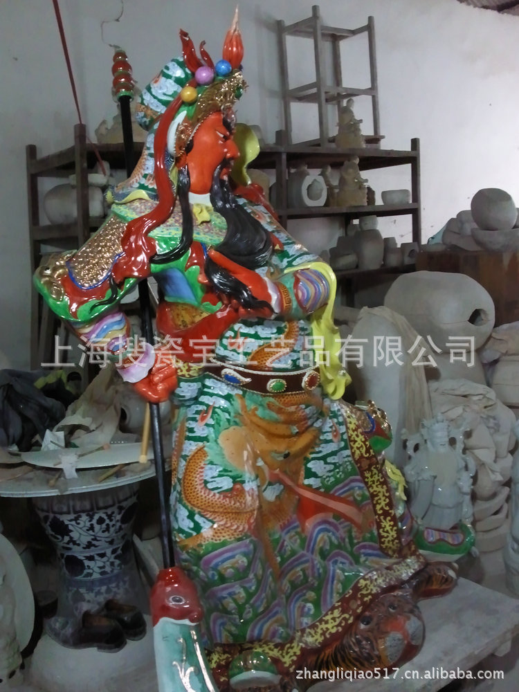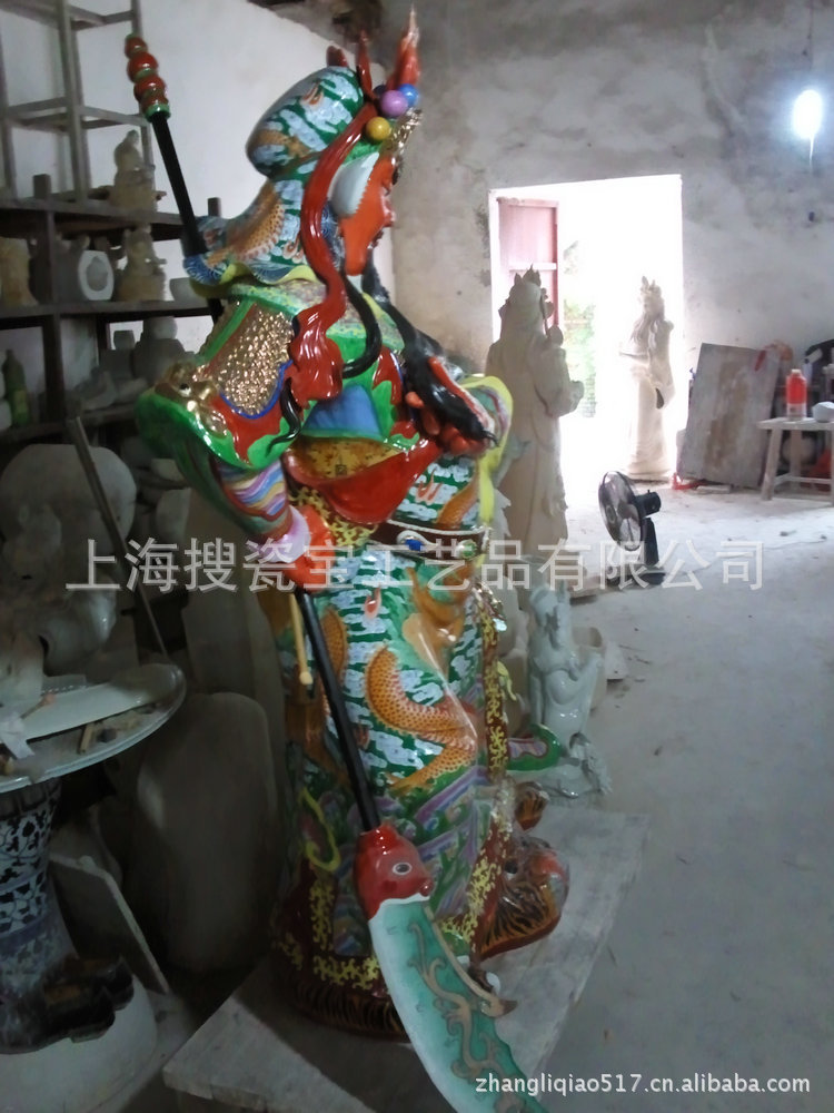 第二看装饰的效果 因为是现代艺术瓷,既要看装饰是否与造型统一,更要看装饰本身是否新颖和有创造性。瓷质材料的精美决定了装饰也应是精美的。现在有些陶瓷艺人,简单地将国画画面移入瓷器装饰,效果未必很好。除少数作品外,两维空间的国画移入三维空间并不适合瓷器装饰。好的瓷器装饰应是在任何一个角度都能给人以效果的完整性,而不是有些画面太挤,有些画面太空。 第三看色泽 青花是否纯净幽远、丰富润泽,釉里红是否红而不俗、层次多变,釉色是否亮丽莹透、无斑点瑕疵。如果以上三点都比较符合要求,则至少说明其具备了收藏的基本条件。接下来要了解作者的自身条件,如果是新人新作价位偏低,大胆买下,如果是名人名作还需考察作者的年作品量。同样作品的重复量(瓷器作品由于制作烧成过程的特殊性,一般惯例是允许有几件同样的或类似的作品),如果量少,价格自然要高,如果量多,特别是重复作品多,建议要谨慎购买。从国际收藏惯例来看,收藏中青年艺术家的作品,看似有一定的风险,实际上却是最具关公瓷塑像-为万世共抑的忠、义、信、智、仁、勇,蕴涵着中国传统文化的伦理、道德、理想,渗透着儒学的春秋精义,并为释教、道教教义所趋同的人生价值观念,实质上就是彪炳日月、大气浩然的华夏魂。