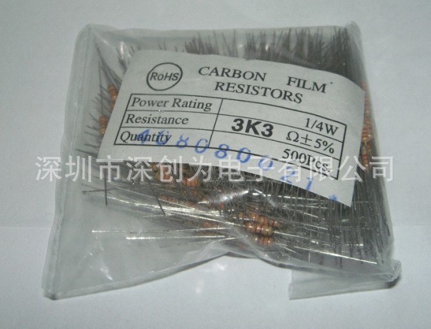 色环电阻1/4W 3.3K欧 5%精度 500个一包 全新正品 5元一包