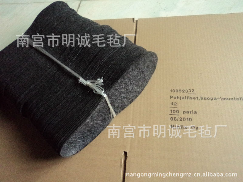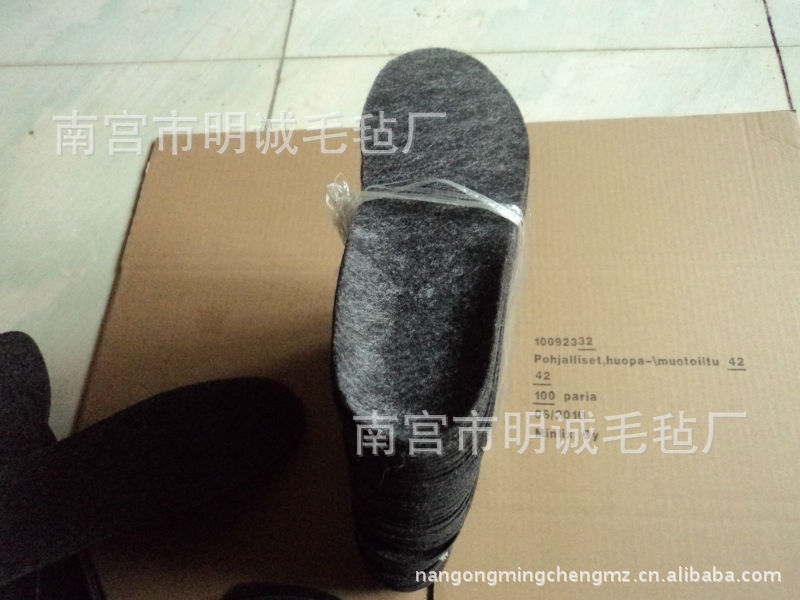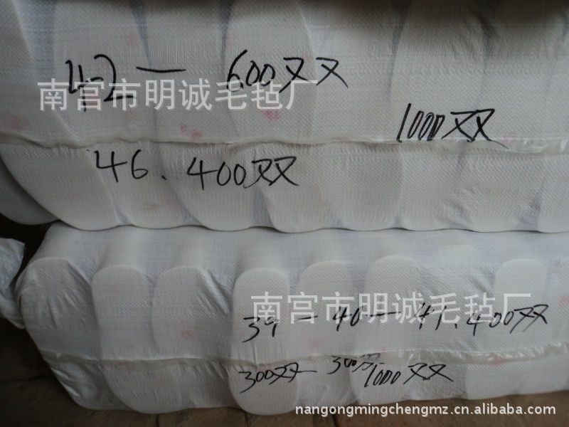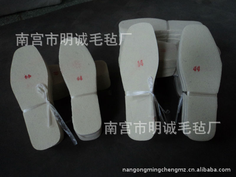 本厂生产的毛毡鞋垫为通用型,适合用于各种鞋。而且不影响外观。质量分类:一级0.68元/双、1200双/件。