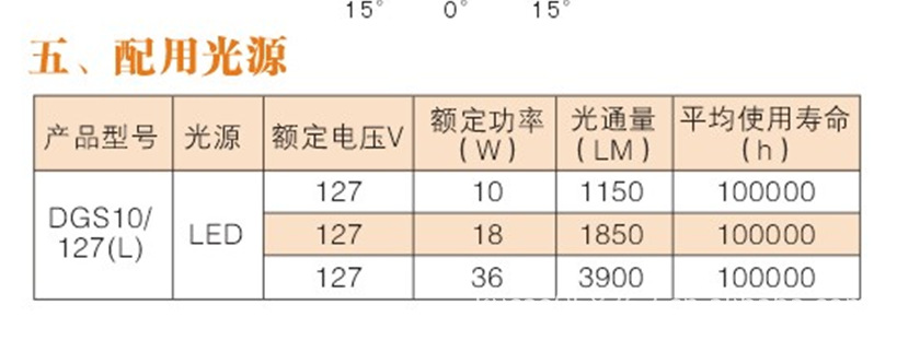 - 采用特殊结构设计,灯具悬挂3米高时,配光距离可达15米。