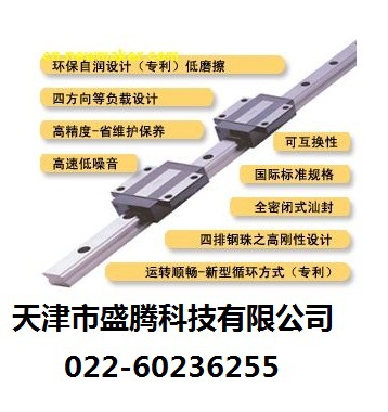 直线导轨:◎直线导轨又称线轨、滑轨、线性导轨、线性滑轨。用于直线往复运动场合,拥有比直线轴承更高的额定负载, 同时可以承担一定的扭矩,可在高负载的情况下实现高精度的直线运动. 直线运动导轨的作用是用来支撑和引导运动部件,按给定的方向做往复直线运动。依按摩擦性质而定,直线运动导轨可以分为滑动摩擦导轨、滚动摩擦导轨、弹性摩擦导轨、流体摩擦导轨等种类。 ◎直线轴承主要用在自动化机械上比较多,像德国进口的机床,纸碗机,激光焊接机等等,当然直线轴承和直线轴是配套用的.像直线导轨主要是用在精度要求比较高的机械结构上, 滑块-使运动由曲线转变为直线。新的导轨系统使机床可获得快速进给速度,在主轴转速相同的情况下,快速进给是直线导轨的特点。直线导轨与平面导轨一样,有两个基本元件;一个作为导向的为固定元件,另一个是移动元件。由于直线导轨是标准部件,对机床制造厂来说.唯一要做的只是加工一个安装导轨的平面和校调导轨的平行度。当然,为了保证机床的精度,床身或立柱少量的刮研是必不可少的,在多数情况下,安装是比较简单的。 作为导向的导轨为淬硬钢,经精磨后置于安装平面上。与平面导轨比较,直线导轨横截面的几何形状,比平面导轨复杂,复杂的原因是因为导轨上需要加工出沟槽,以利于滑动元件的移动,沟槽的形状和数量,取决于机床要完成的功能。例如:一个既承受直线作用力,又承受颠覆力矩的导轨系统,与仅承受直线作用力的导轨相比.设计上有很大的不同。