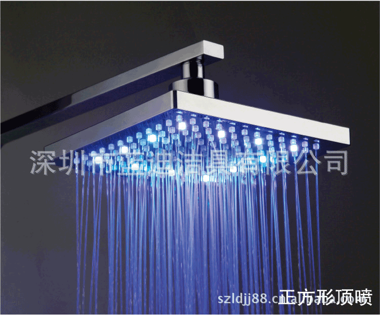 【产品名称】:LED方形淋浴花洒 感温发光变色沐浴套装