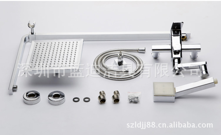 1、全铜淋浴龙头一个2、全铜管架一套3、1.5米不锈钢双扣软管一条(防爆型软管)4、手持LED发光方形花洒一个5、全铜LED发光大顶喷一个;6、全铜固定支架配件一个;7、小花洒升降座一个;8、LED发光起泡龙头灯一个;9、垫片和螺丝若干.