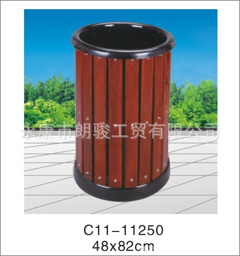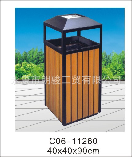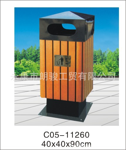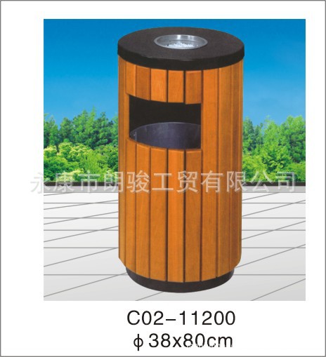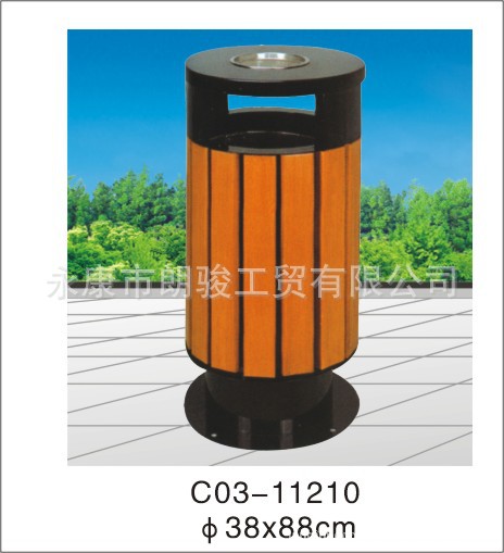 【表面处理】垃圾桶本身经喷砂处理去油去锈后,钢板表面及木条再采用防腐防蛀处理,抗紫外线丙稀酸油漆多层喷涂。