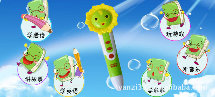 索迪星点读笔轻轻一点,就能让书本开口说话,讲故事、学英语、学成语、玩游戏、学儿歌、念唐诗,点到哪,学到哪,再淘气的宝宝都能在第一时间被它深深地吸引,忍不住读完一页又一页!让您的宝宝在玩中学,学中玩,让您的宝宝在快乐中成长!