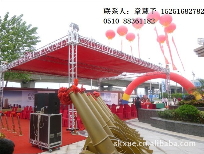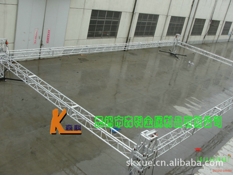 注意事项:一般常用的铝合金桁架立柱为300*300MM的截面,桁架横梁如果挂的东西不是很重用300*300MM的,如果跨度大或者挂的灯光重用400*400或者450*450的。