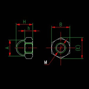 | 圆盖螺帽 规格:M12 H=15.5 h=7 A=15.5 B=19 (E)=21 材质:Q235 |