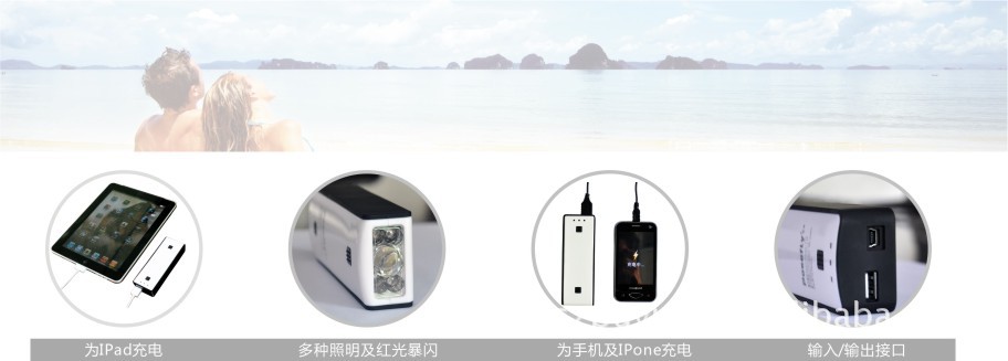1、 可用于随身携带的大容量移动式电源,内置6000/4800/2400MAH时电能,随时随地为您提供不竭能量,简约设计,新颖实用。